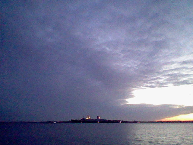 And just like that, reality has returned to us. No longer cloaked in shadow, for one final time, we can see her as she is. This is it. Not a particularly good picture, but this is the final picture I ever took of the SS United States with my DSi. As my favorite subject literally sailed off into the sunset, I snapped one final picture of her. The subject and camera that inspired my hobby of photography in the first place. When I woke up that morning, I was extremely upset about the fate of the SS United States. However, this experience of spending 8 or 9 hours chasing her down the Delaware River actually gave me some closure. The next nearest park along the river was way too far away to justify lengthening the return trip home, and there's no guarantee that I’d see much of anything in the darkness. Whenever we would stop to see her in Philadelphia, we would also eat at the Wendy’s across the street. You always got a great look at her prow as you ate. I decided to carry on the tradition. I hadn’t eaten yet that day, so I went to the nearest Wendy’s. It was really sketchy, but I barely gave it much thought. I was hungry, and I had a lot to process. I even texted my boyfriend, telling him how weird it is to look out the window and not see her there. It was almost a 3 hour drive home, and when I got there, I texted my boyfriend again, saying “Gosh, being out in the cold all day gives me a new appreciation for my warm cozy bed. My hands were so numb that I couldn't articulate the joints in my thumb”